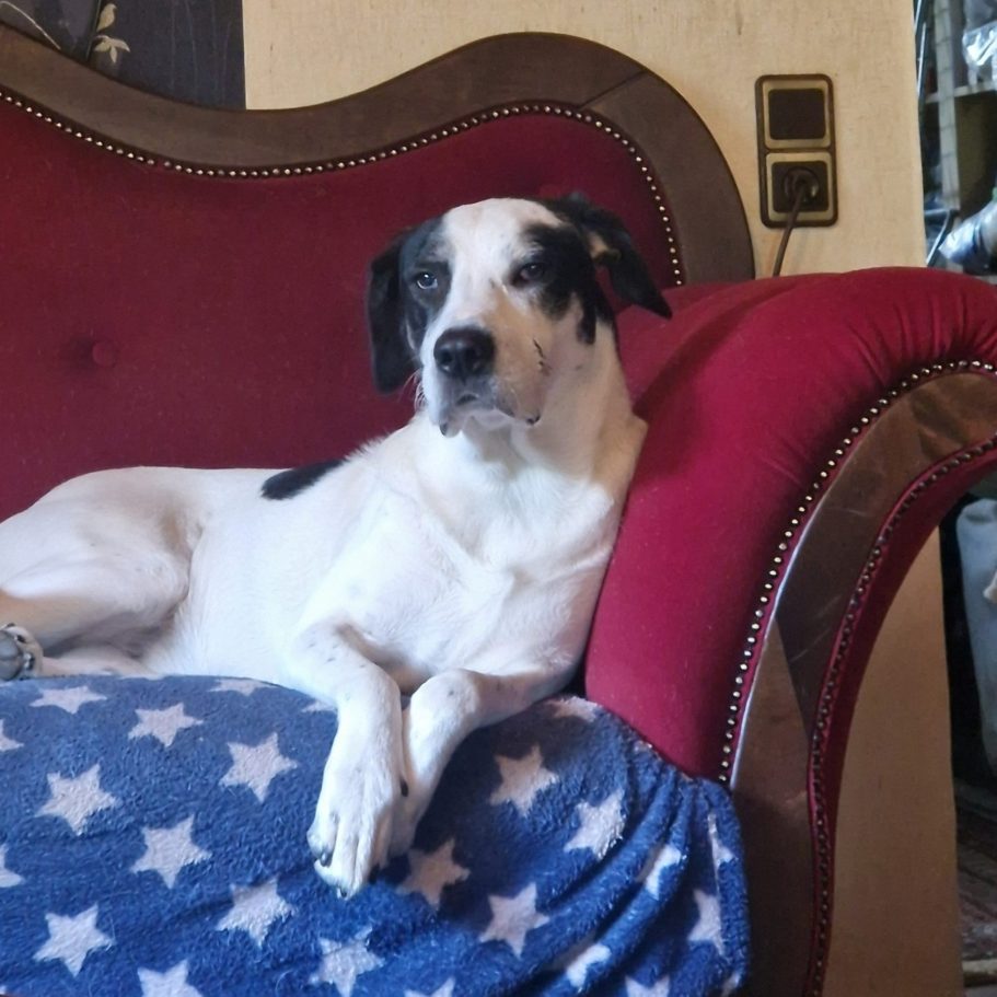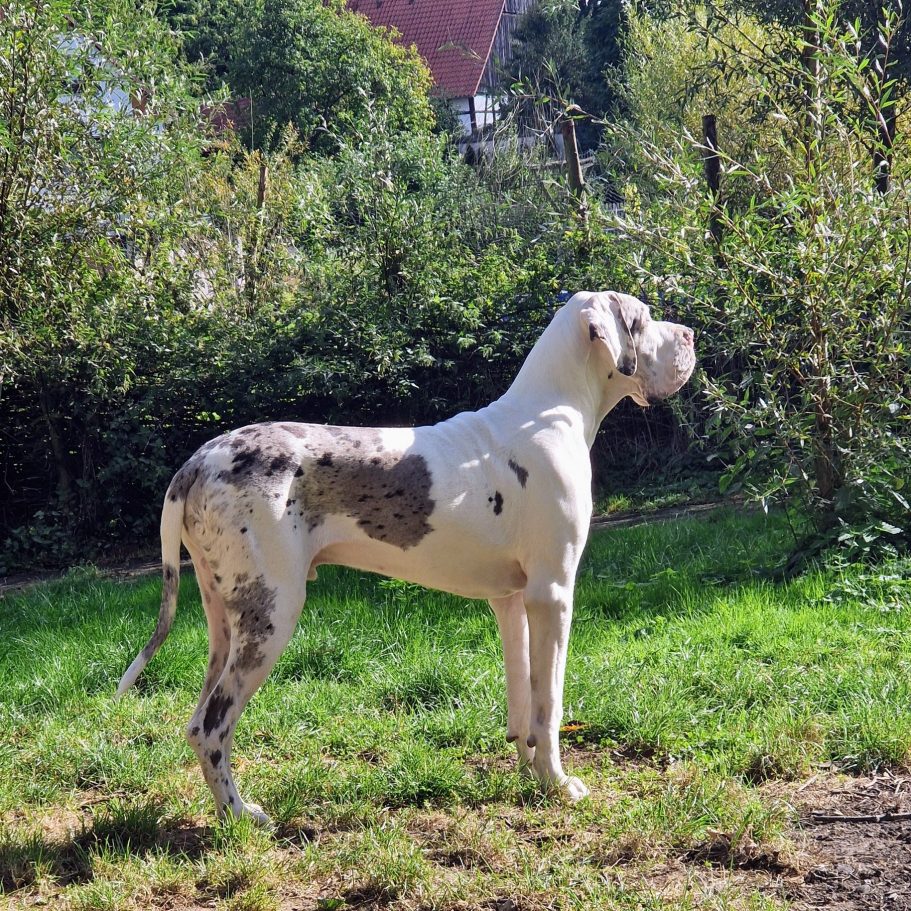 Viggo ist einfach nur lieb und verschmust und hat sich mit seinem tollen Wesen so in unsere Herzen geschlichen, dass wir ihn nicht abgeben konnten. Er ist ein harmonischer, typischer Rüde mit sehr gutem, aber nicht übertriebenem Kopf und kräftigen Knochen.